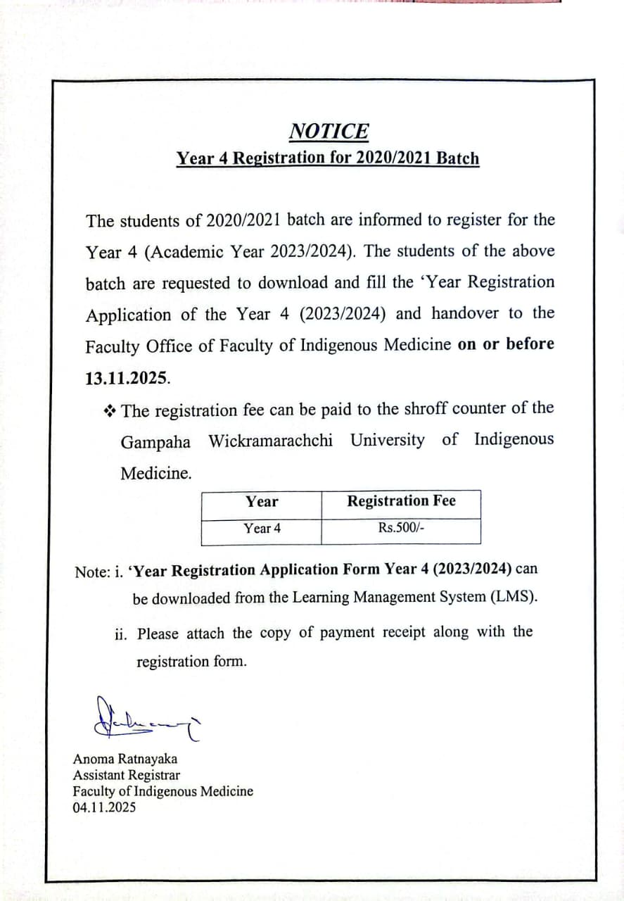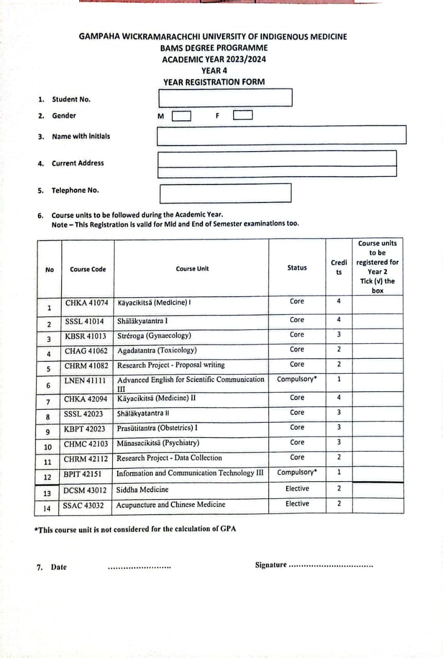 Repeat Registration BAMS Degree Programme 2022/2023 Year 4 - Semester I and 2021/2022 Level V Semester II