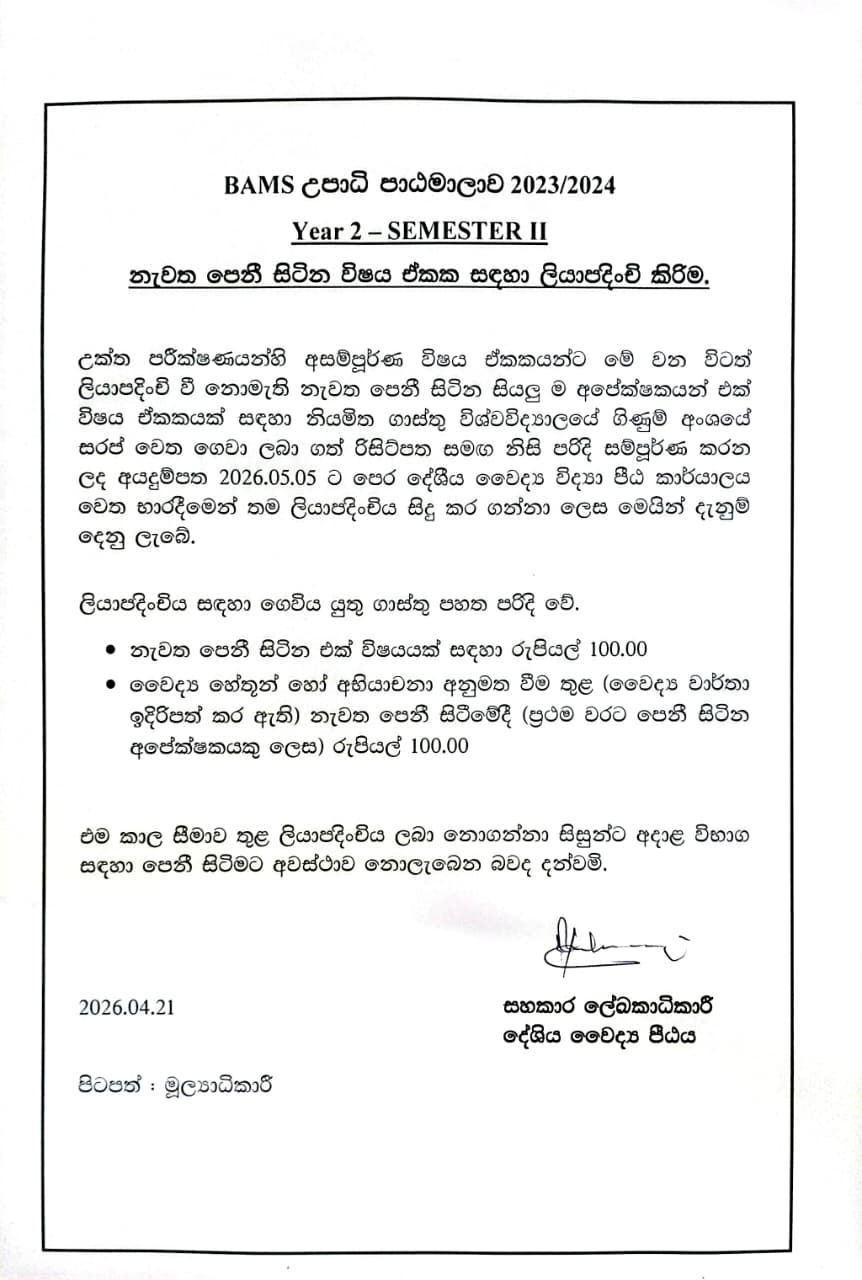 Repeat Registration BAMS Degree Programme 2022/2023 Year 2- Semester II & year 3 semester II